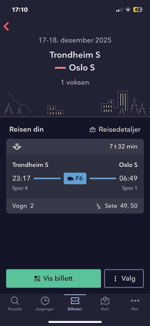 T/r 2pers Oslo-Geilo 7.nov-9.nov