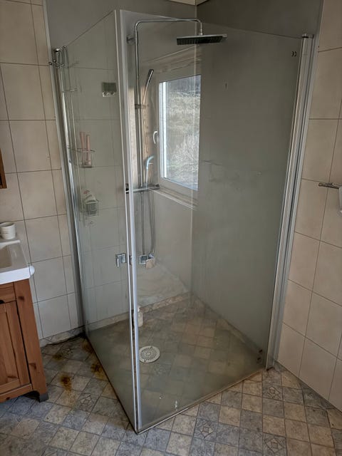 Dusj dør rett, svinger ut og inn