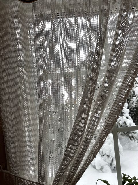 Håndheklet kappe gardin
