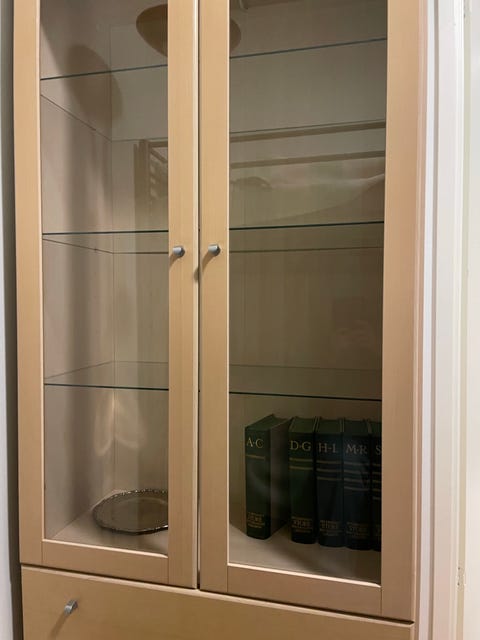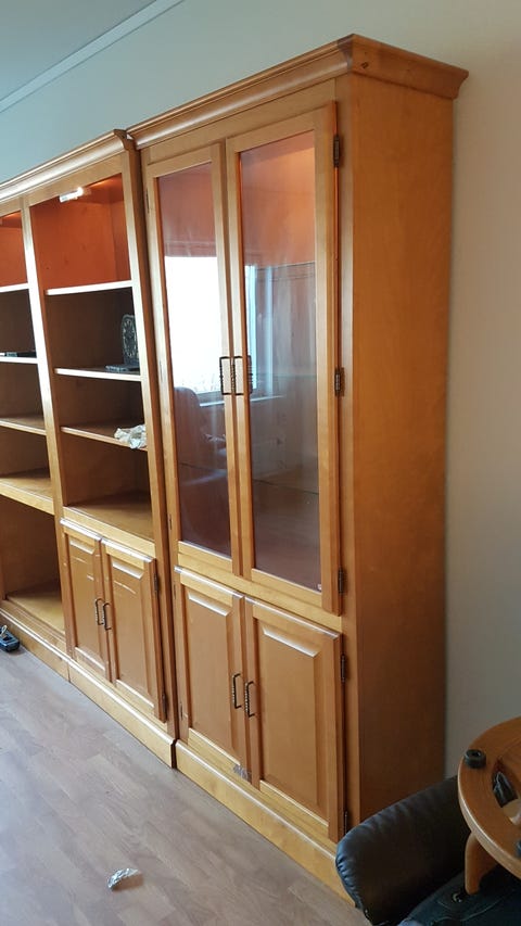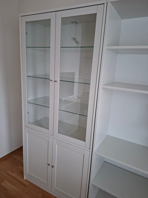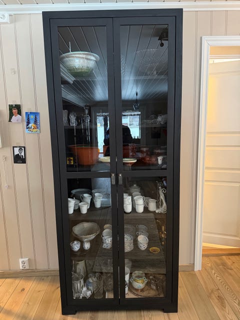 Vitrineskap og hylle seksjon