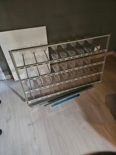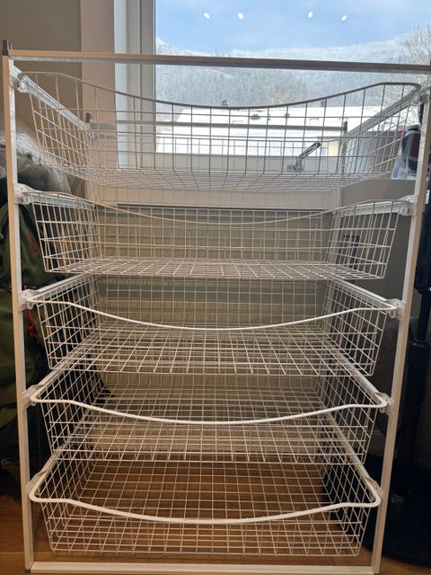 Hvit skohylle selges