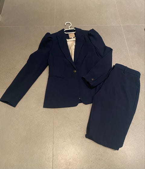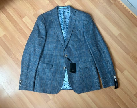 Billig kr 1900 Oscar Jacobson marineblå pinstripe blazer og vest, super 130