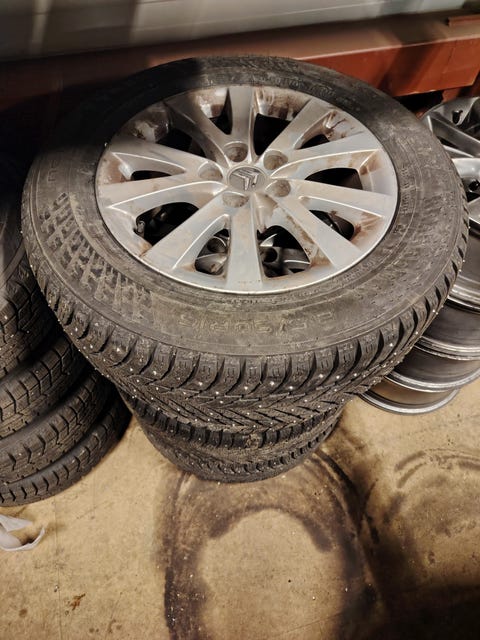 Lite brukte piggdekk på felg