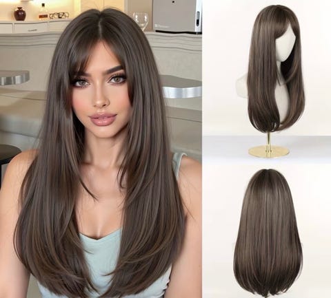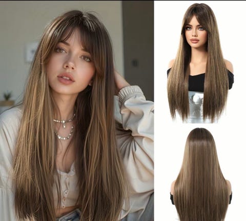 Lang Rett Brun Parykk