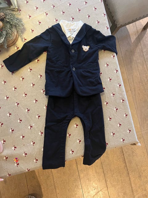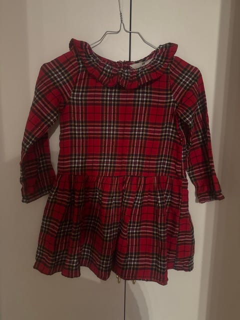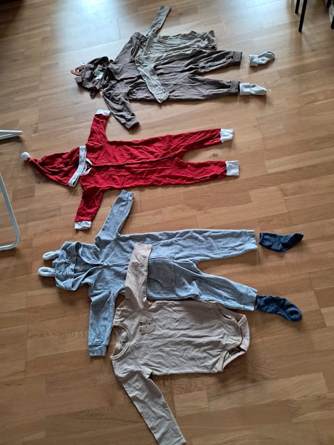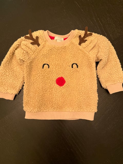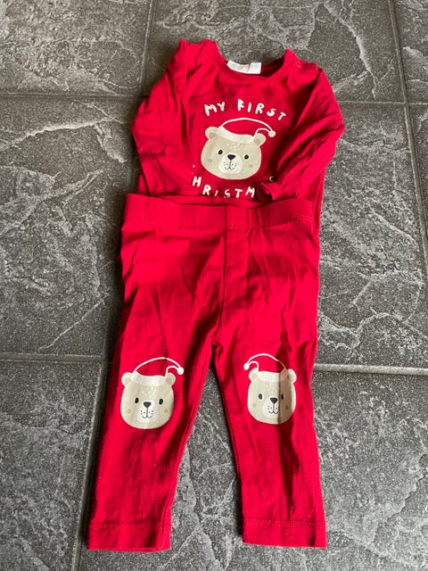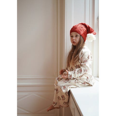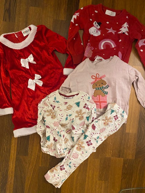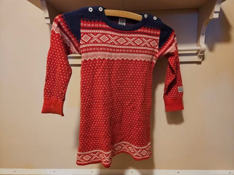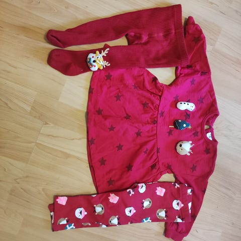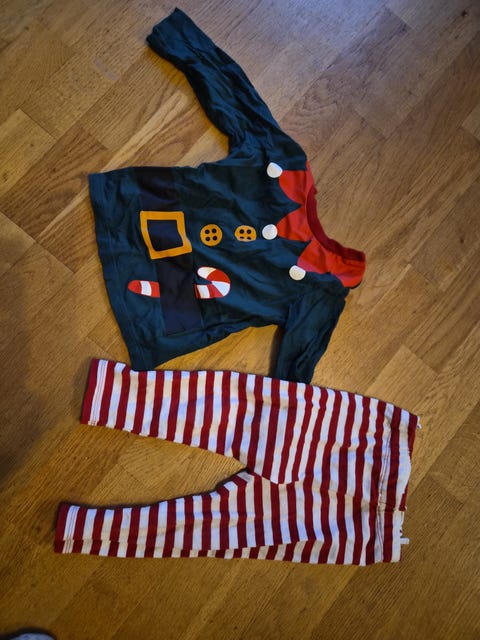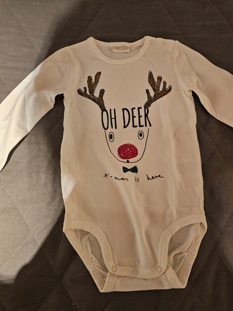 Julekjole str. 68 med jul mønster beige med pepperkaker, kvister og snøfnugg