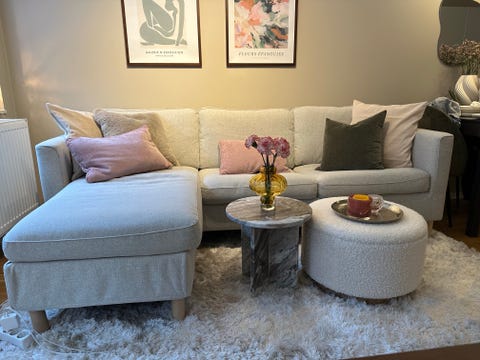 Nyrenset sofa med sjeselong