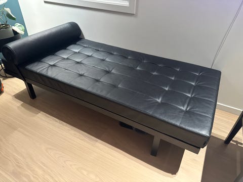Sort skinn stol til salgs