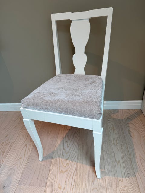 Stol i grått ullstoff.