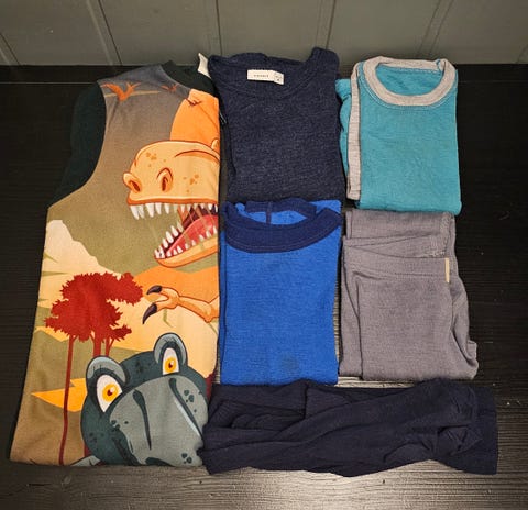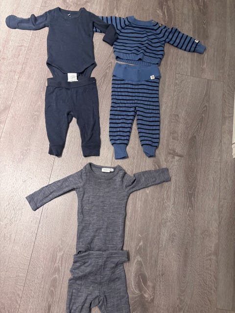 Mørkeblå ullpakke med Mole ullbukse, Janus ullgenser og ull longs str 128