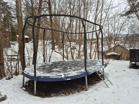 Liten trampoline gis bort