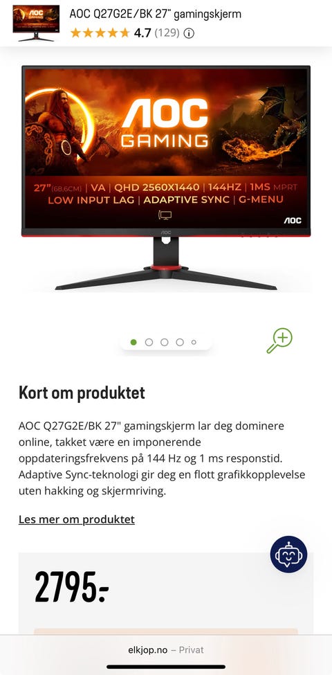 AOC Q27G2E/BK 27’’ gamingskjerm