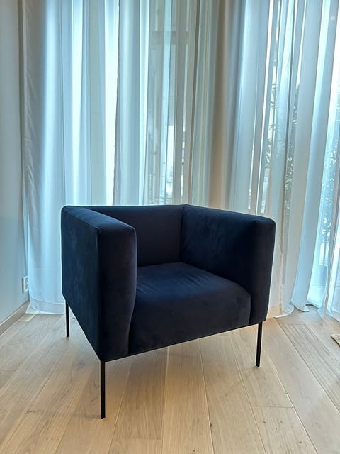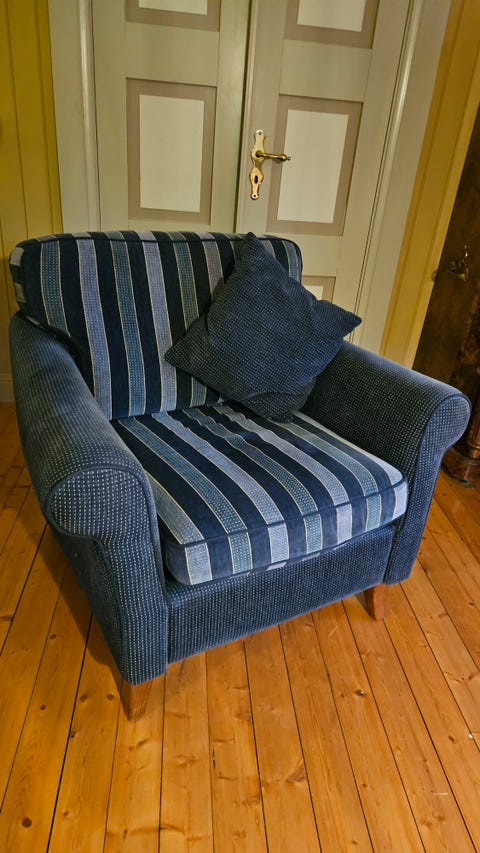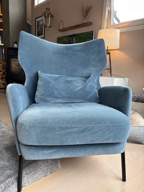 Blå velour lenestol