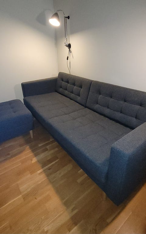 Sofa og stol med pall