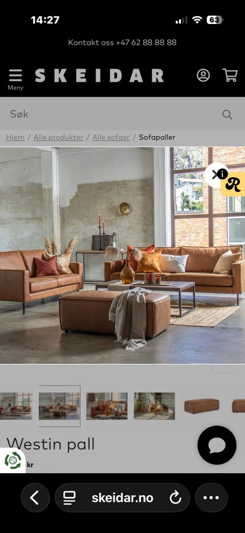 3-seter skinnsofa