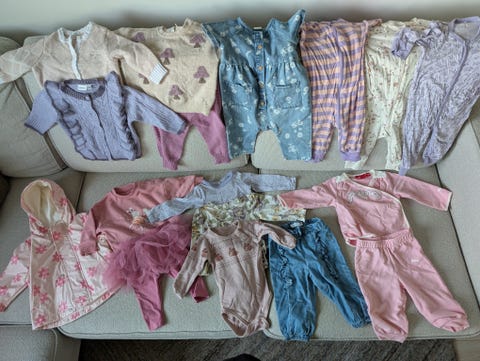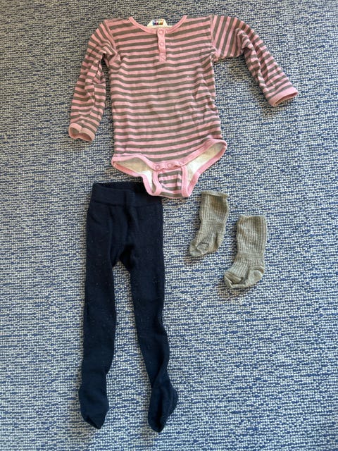 Variert klespakke til jente, med bl.a. ull, varm fleece og kjoler (122-128)