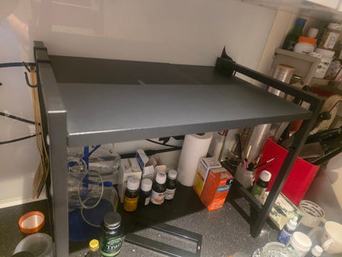 Sort hylle som kan justeres