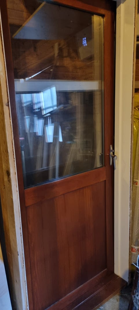 Dør i teak gis bort mot henting!