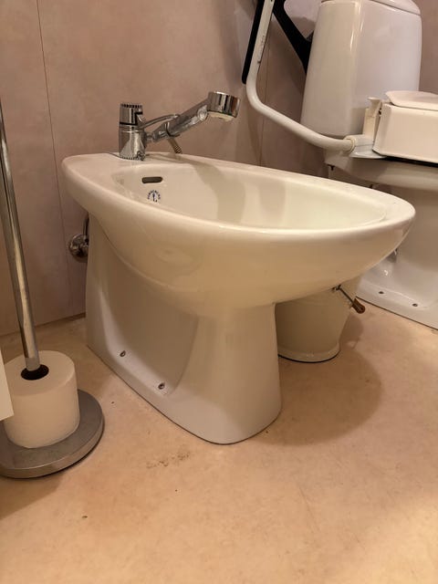 Bidé i hvitt keramisk materiale