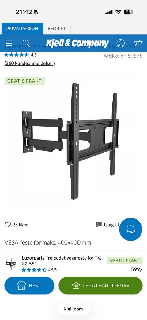 Antikviteter og kunst (167)Dyr og utstyr (42)Elektronikk og hvitevarer (10 660)Foreldre og barn (547)Fritid, hobby og underholdning (10 952)Hage, oppussing og hus (221)Klær, kosmetikk og tilbehør (159)Møbler og interiør (6 692)Næringsvirksomhet (93)Sport og friluftsliv (79)Utstyr til bil, båt og MC (46)