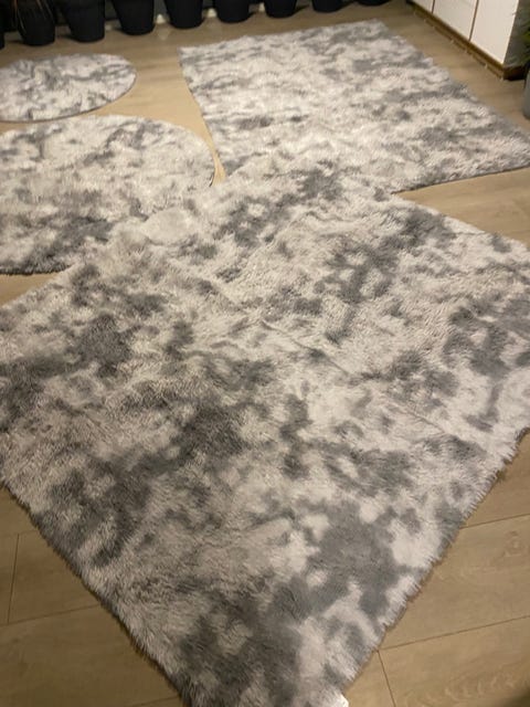Grått fluffy teppe