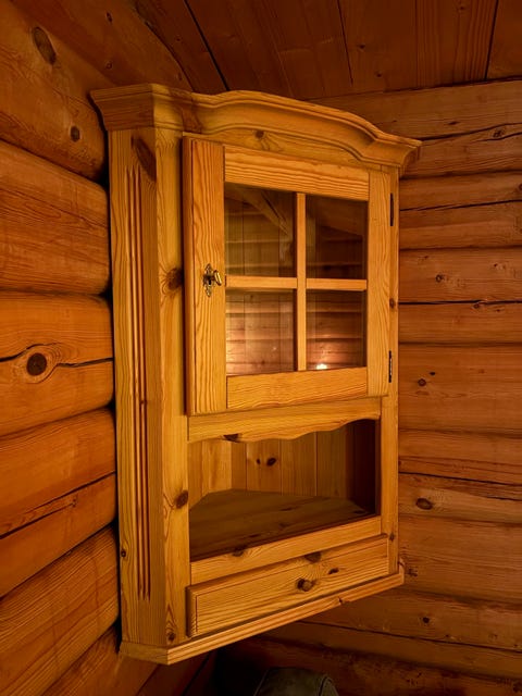 Skap i tre med glassdør