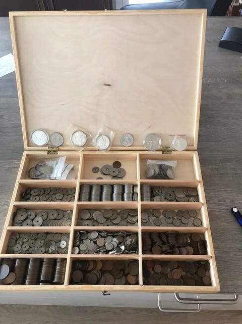 Myntsamling i flott kasse