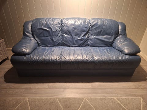Skinn sofa gis bort