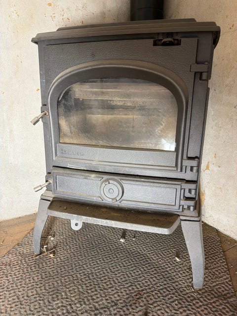 Gammel vedkomfyr i støpejern