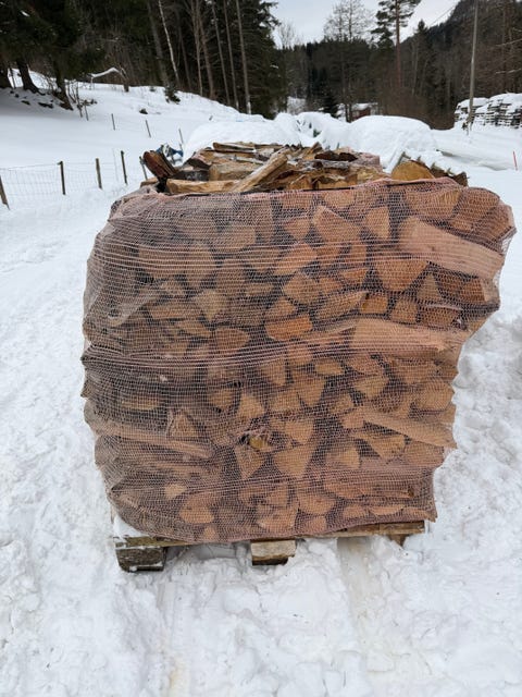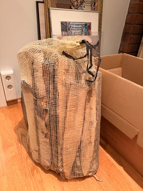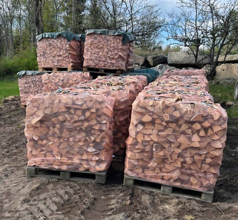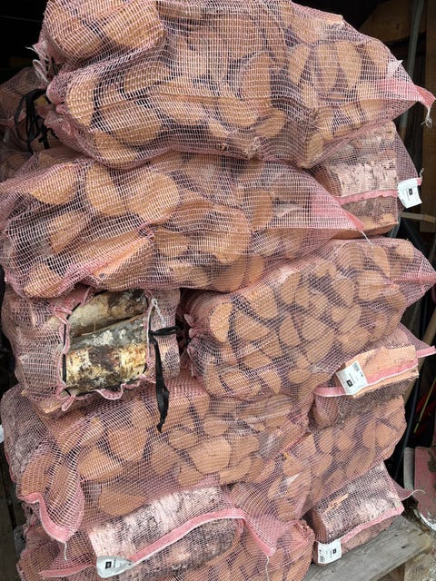 Ved i nettingsekker