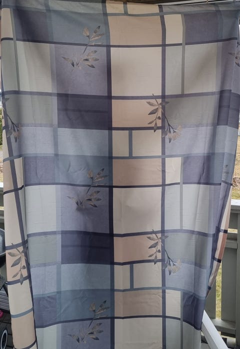 Blå/beige gardiner