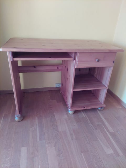 Skrivebord i furu gis bort