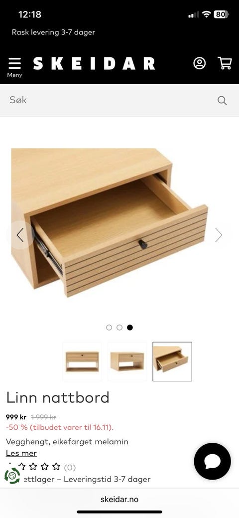Nye nattbord i eik!