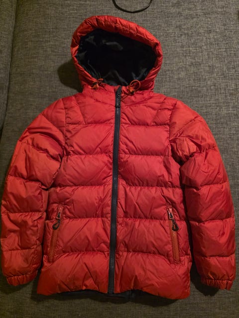 Rød tynn dunjakke str 164