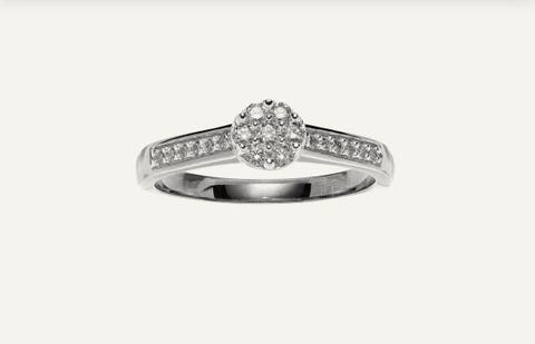 Diamantring 9kt / 375 hvitt gull