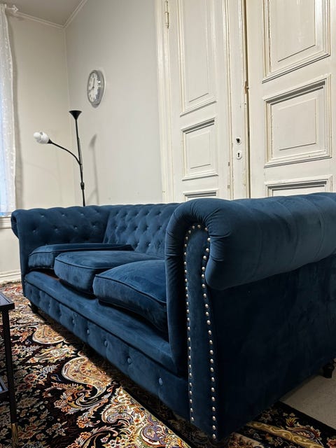 Blå velur sofa