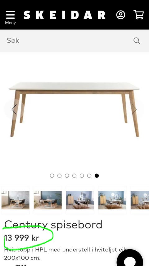 century spisebord fra skeidar