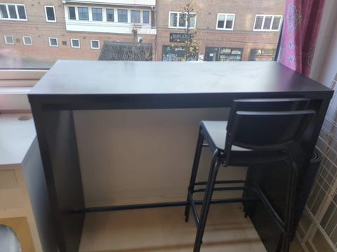 Høyt bord med barstol i svart