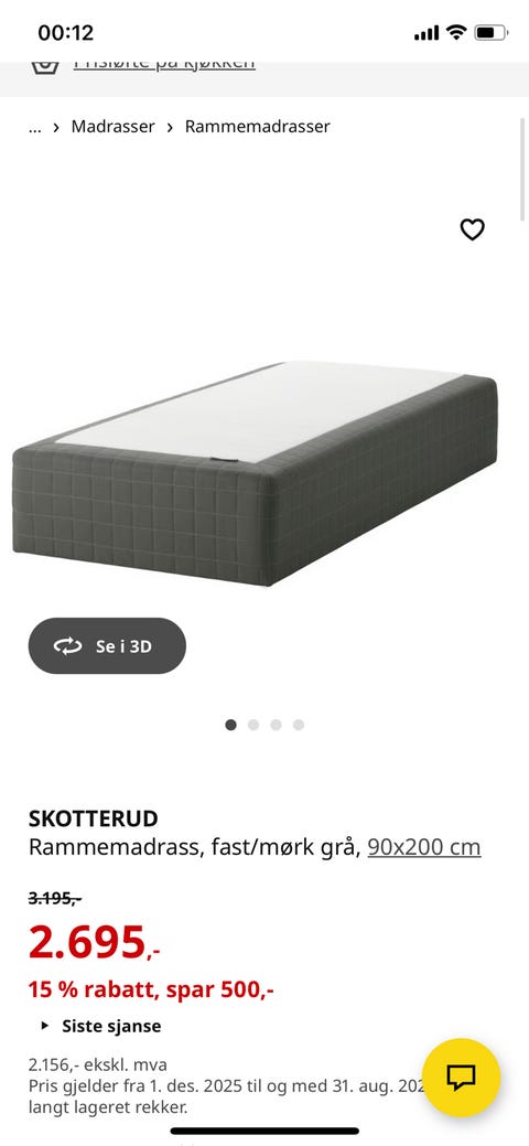 Rammemadrass fra Jysk 90x200 cm