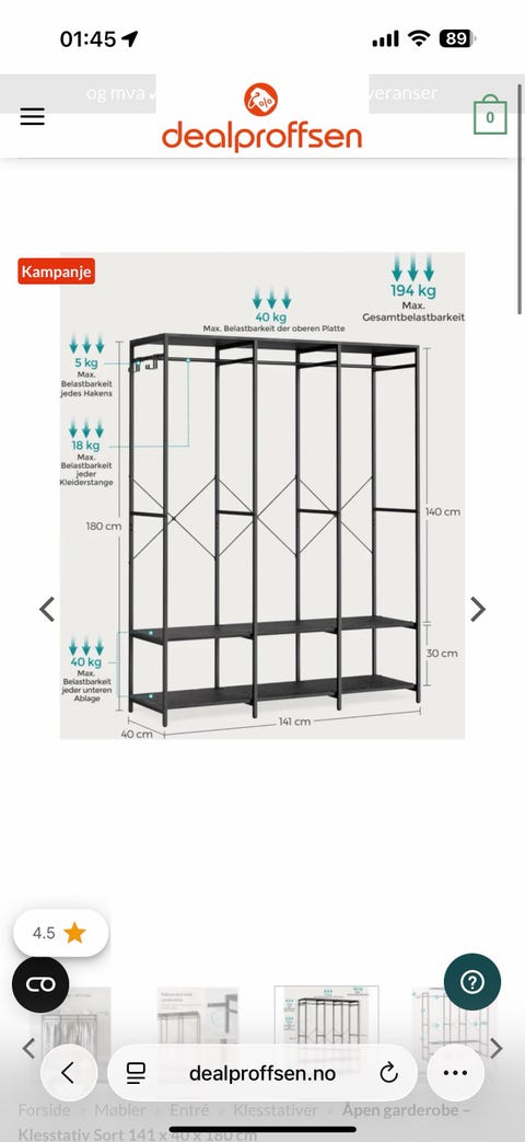 teak garderobehylle