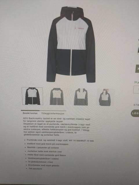 Skijakke selges i str XS