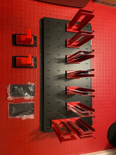 Mye utstyr til sykkelsport.