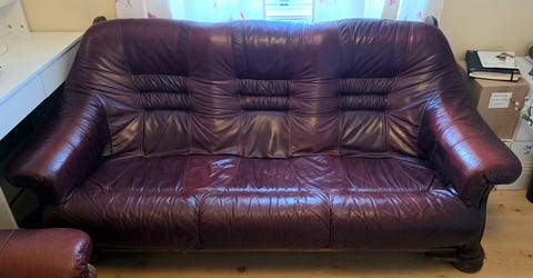 Skinnsofa gis bort