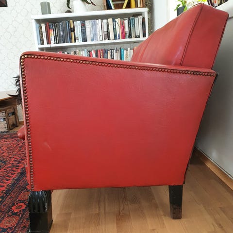 Antikk rød skinnsofa