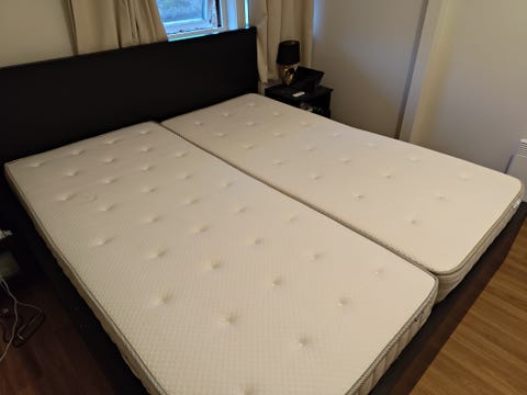 Seng med madrass og hodegavl