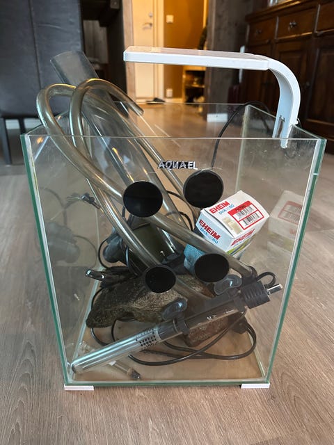 Akvarium med tilbehør