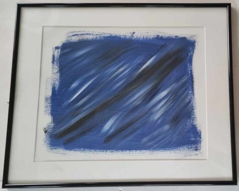 Abstrakt maleri blå og hvit
