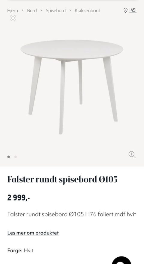 Hvit rundt spisebord