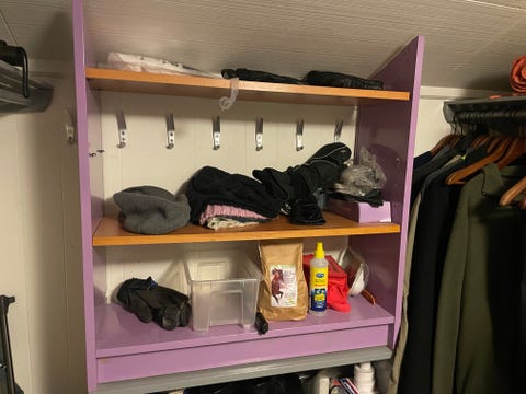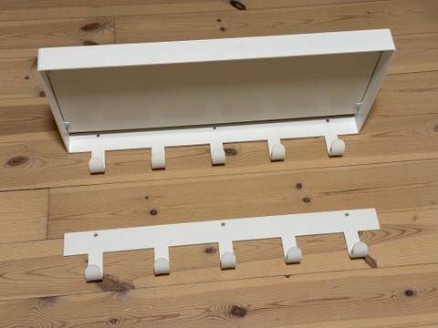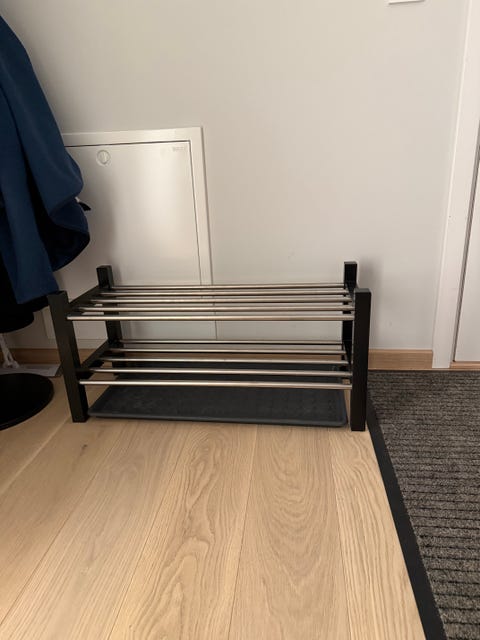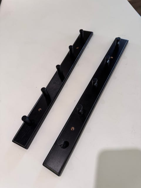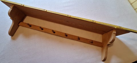 Hylle med knagger.