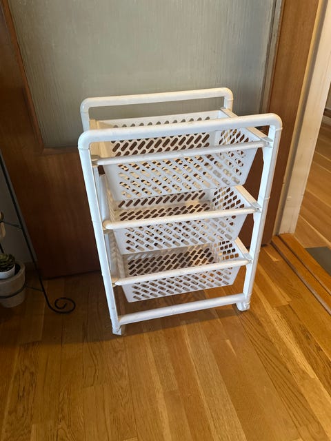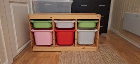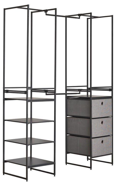 Klesstativ med hyller og bokser