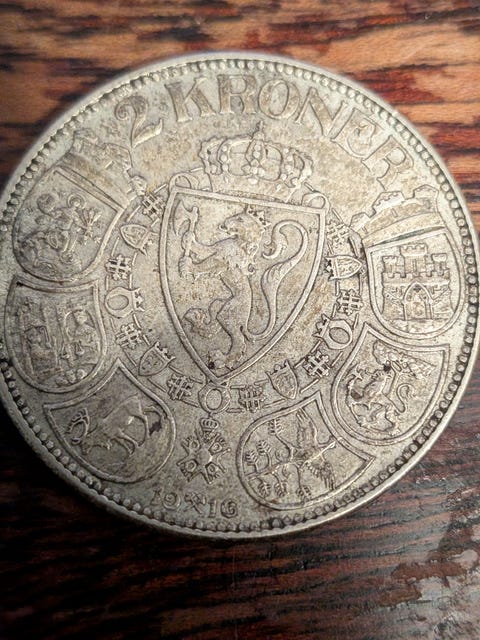 Norsk 2 kroner 1916 sølv